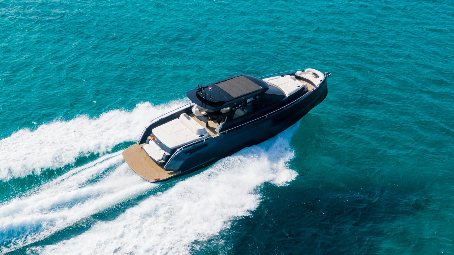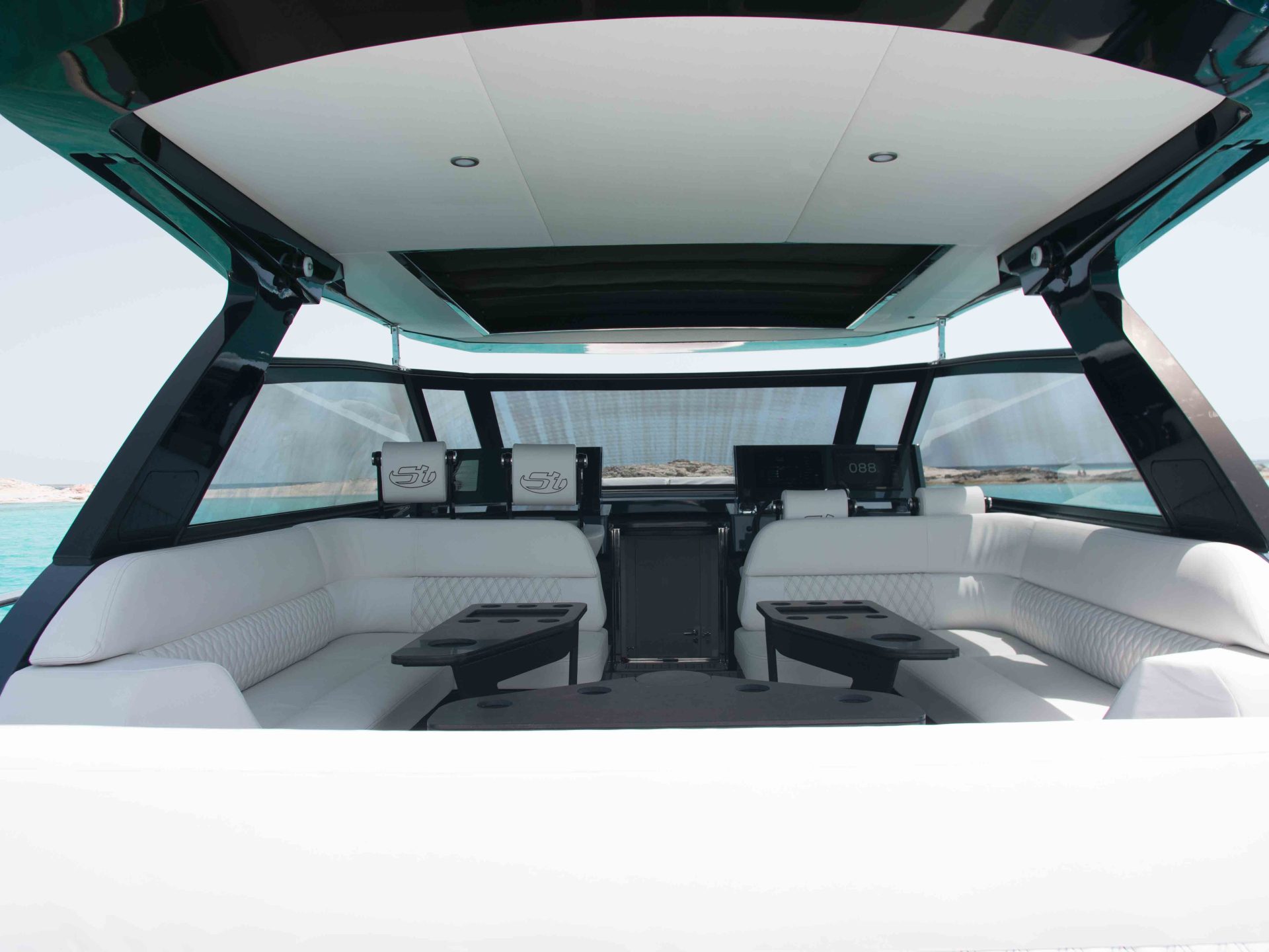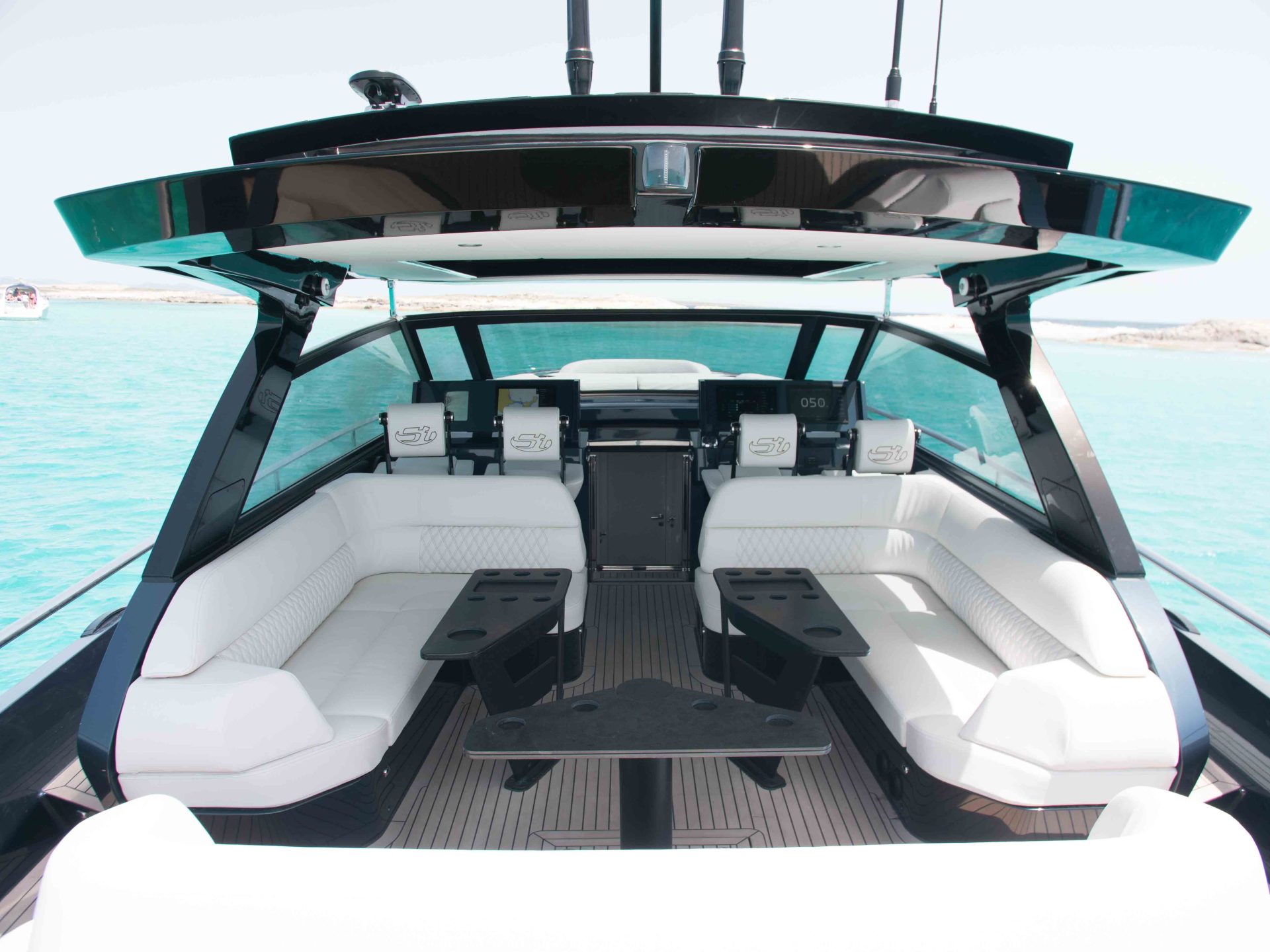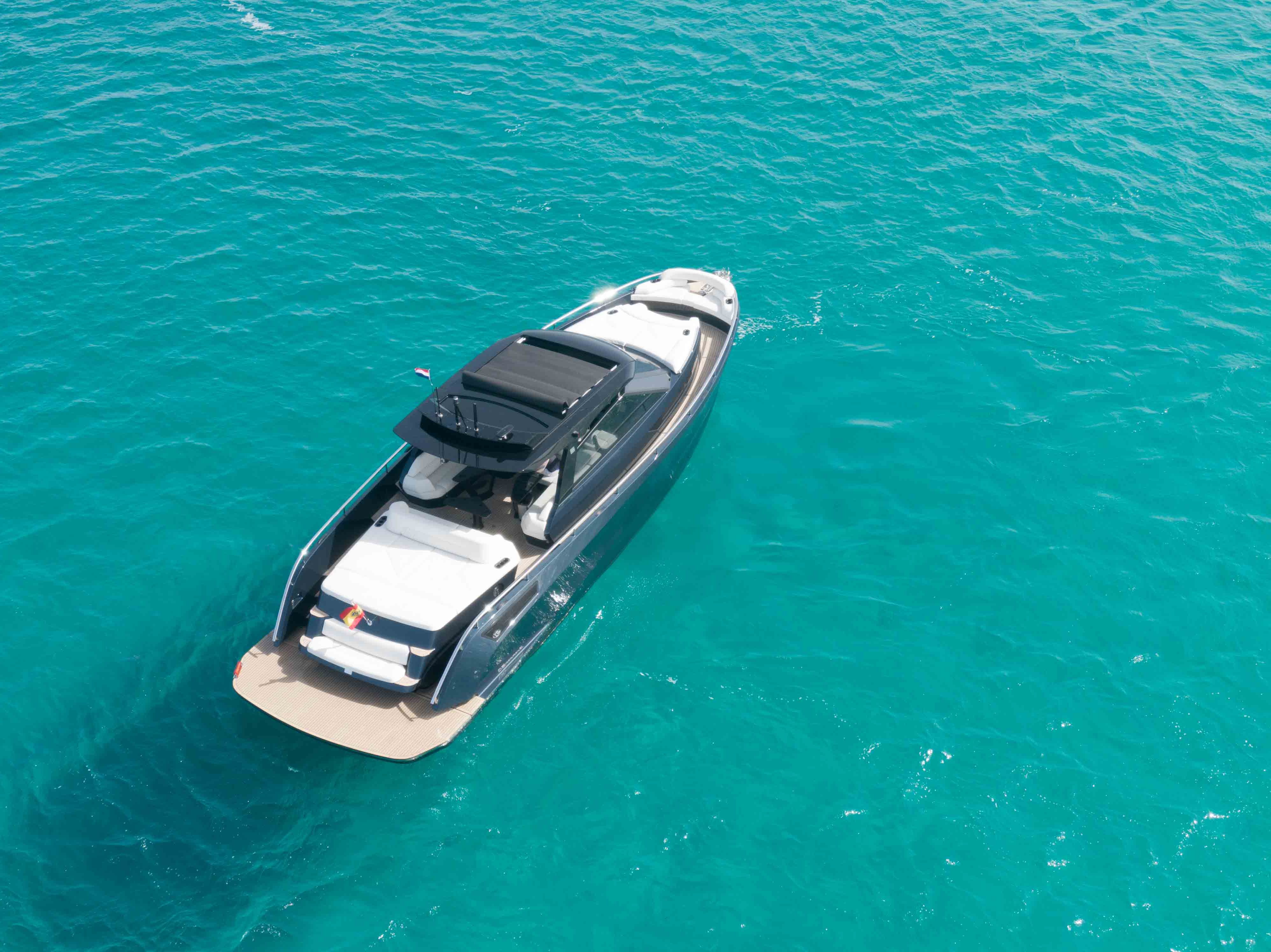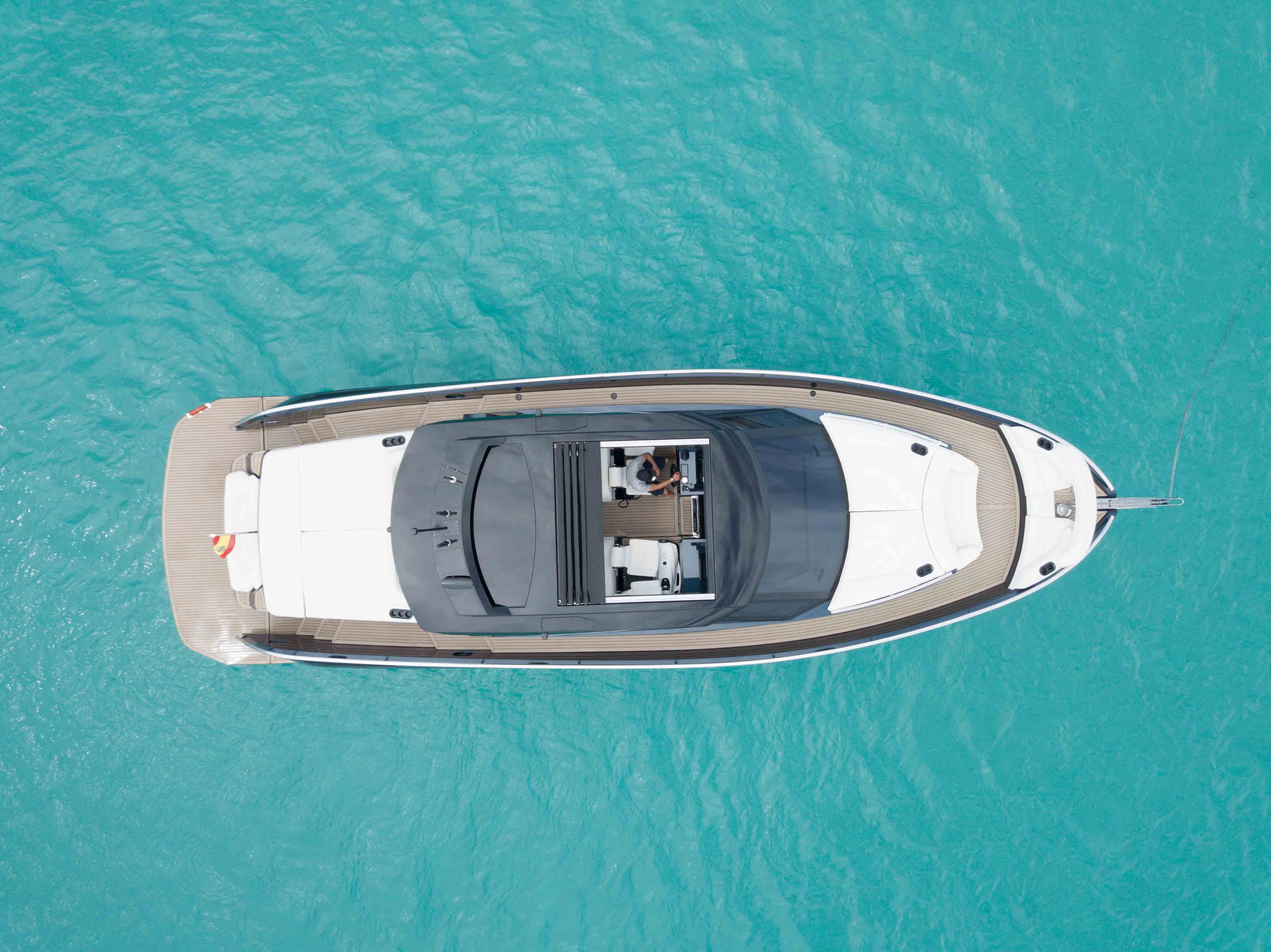 A great feature of this boat is the hydraulic ‘bimini’ roof, which provides perfect shade for an afternoon nap or whenever you need a break from the sun.